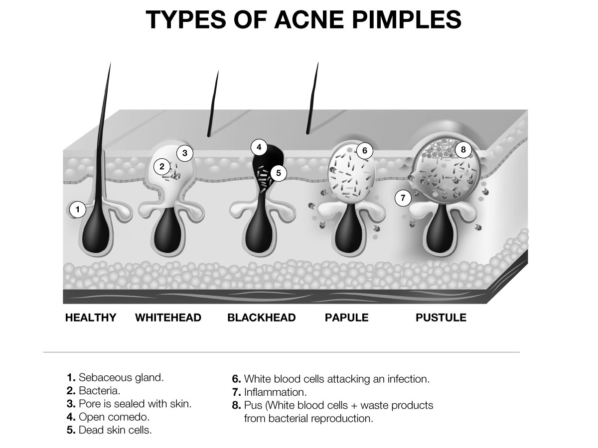 Η ακμή είναι μια εξάνθημα από σπυράκια, βλατίδες και φλύκταινες. Ένα σπυράκι σχηματίζεται από μια συλλογή λίπους, δέρματος και κερατίνης που έχει κολλήσει σε έναν θύλακα της τρίχας. Όταν αυτός είναι ανοιχτός, είναι ένα μαύρο στίγμα, και όταν είναι κλειστός, είναι ένα λευκό στίγμα. Τα λευκά στίγματα μπορούν να προκαλέσουν ρήξη των τοιχωμάτων του θύλακα της τρίχας - και αυτό προκαλεί την ερυθρότητα, τον ερεθισμό, τη φλεγμονή και τη μόλυνση που συνδέουμε με την ακμή. Είναι πιο συχνή στο πρόσωπο, αλλά μπορεί επίσης να εμφανιστεί στον λαιμό, την πλάτη, τους ώμους και τα μπράτσα. Μπορεί να είναι ενοχλητική και επώδυνη για τους πάσχοντες, ανεξαρτήτως ηλικίας.