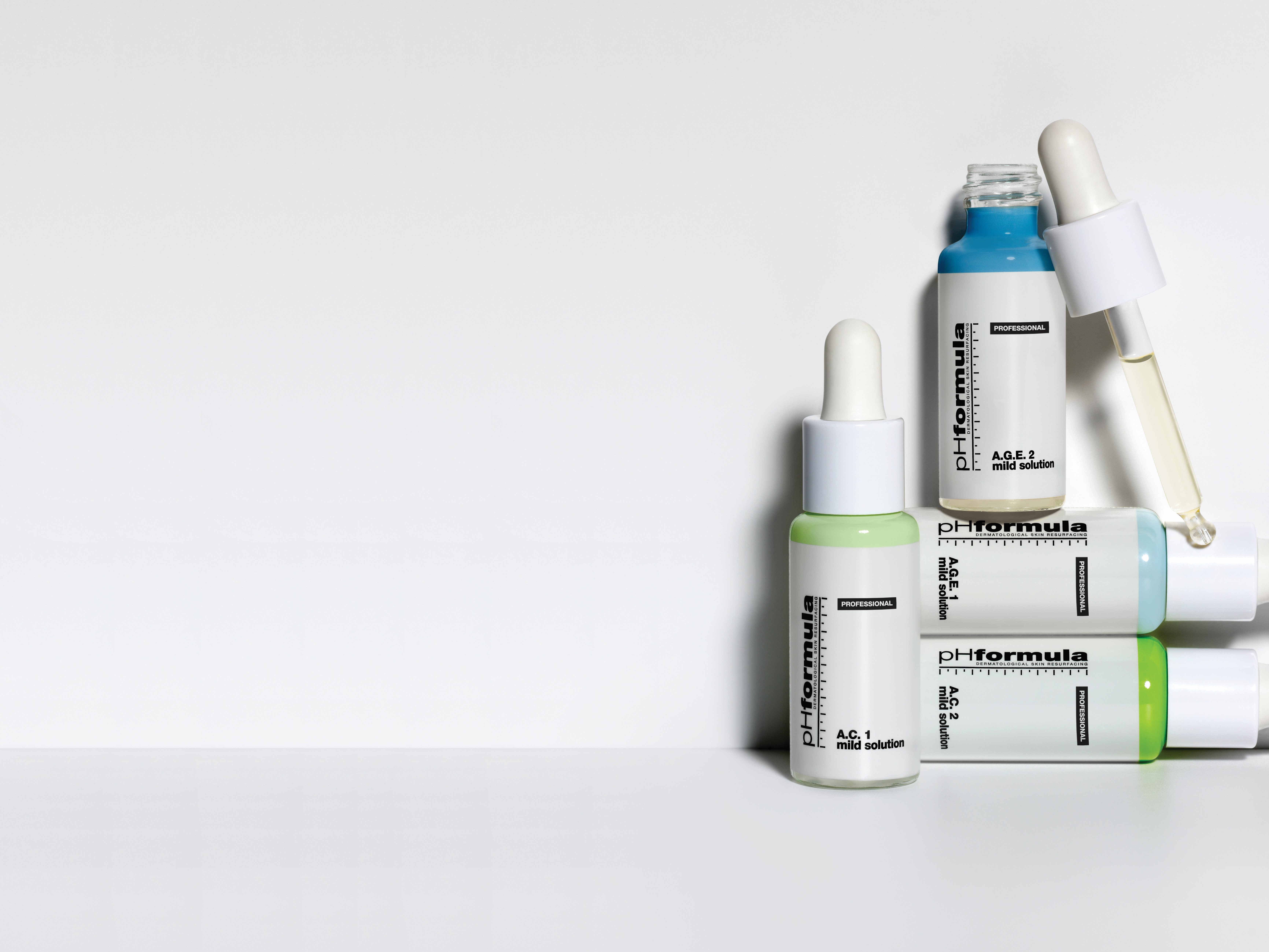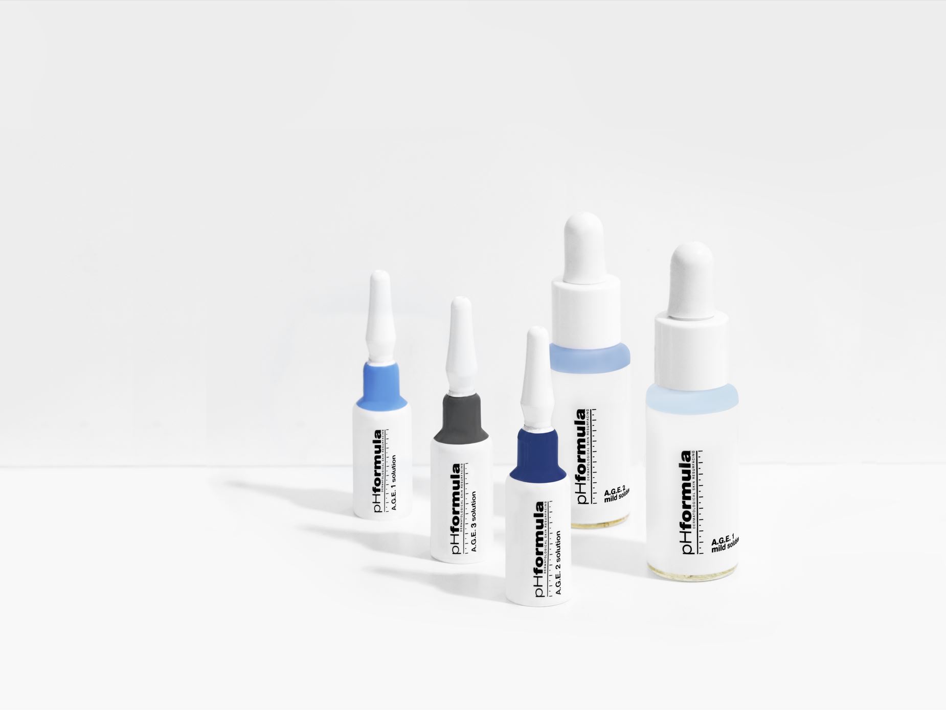 Τα ήπια διαλύματα pHformula AGE είναι ειδικά σχεδιασμένα για να βοηθούν στη διόρθωση των τυπικών σημαδιών γήρανσης, ενισχύοντας παράλληλα την ενυδάτωση του δέρματος. Τα ήπια διαλύματα AGE βελτιώνουν την υφή του δέρματος και το φωτίζουν με μια υγιή λάμψη.